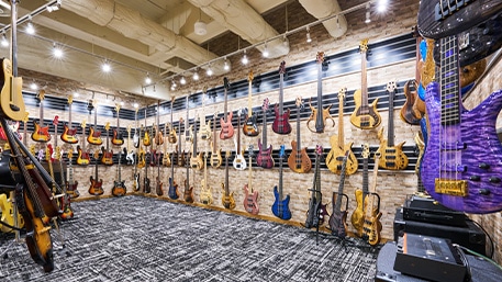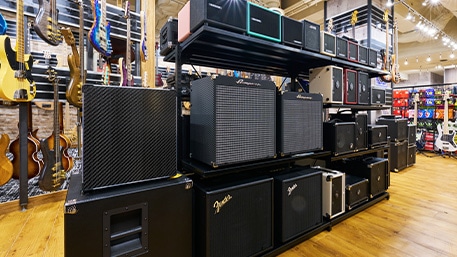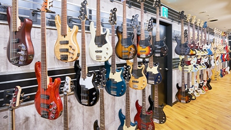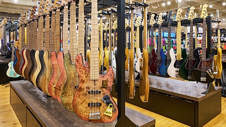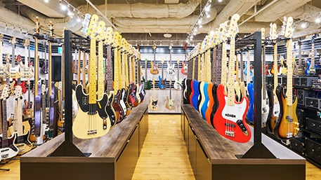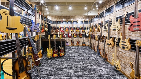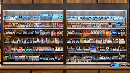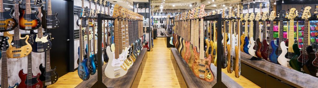 スケールアップし広々としたフロアにビギナー向けのエントリーモデルから、ミドルクラス、ハイエンド、ビンテージ、ユーズドベースを展開。アンプ・エフェクター等、ベース専用だけに留まらない周辺機材やアクセサリーも多岐に展開し、低音用途に適したご提案が可能です。